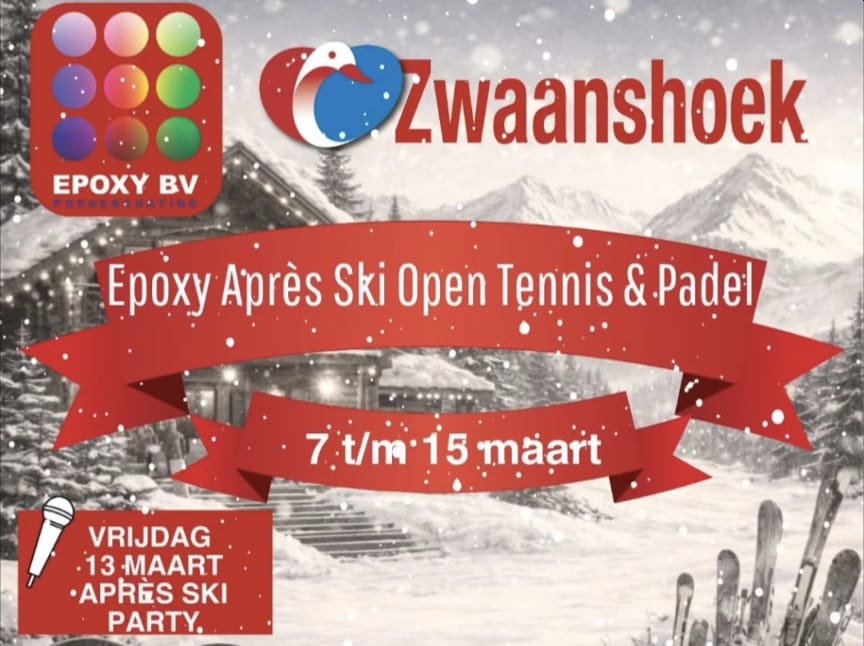 Het Epoxy Après Ski Open Tennis & Padel toernooi 2026 is dé ideale voorbereiding op de voorjaarscompetitie 2026. Het open toernooi wordt georganiseerd van 7 tot en met 15 maart a.s.. Tennissers én padellers kunnen zich nu inschrijven in de categorieën 17+ en 35+.